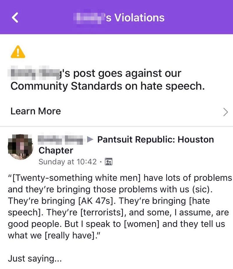 We are a zero funds organization that rely on volunteers and hard work. FB doesn’t seem to care. We are now on a quest to find a better platform, and a better way to organized, because it’s obvious that Facebook cares only for profit and supporting the racist and sexist status quo.