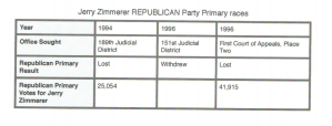 Jerry Zimmerer is a politician through and through. He has run as a republican three different times, in 1994, and twice in 1996. He’s donated heavily to GOP causes as well.